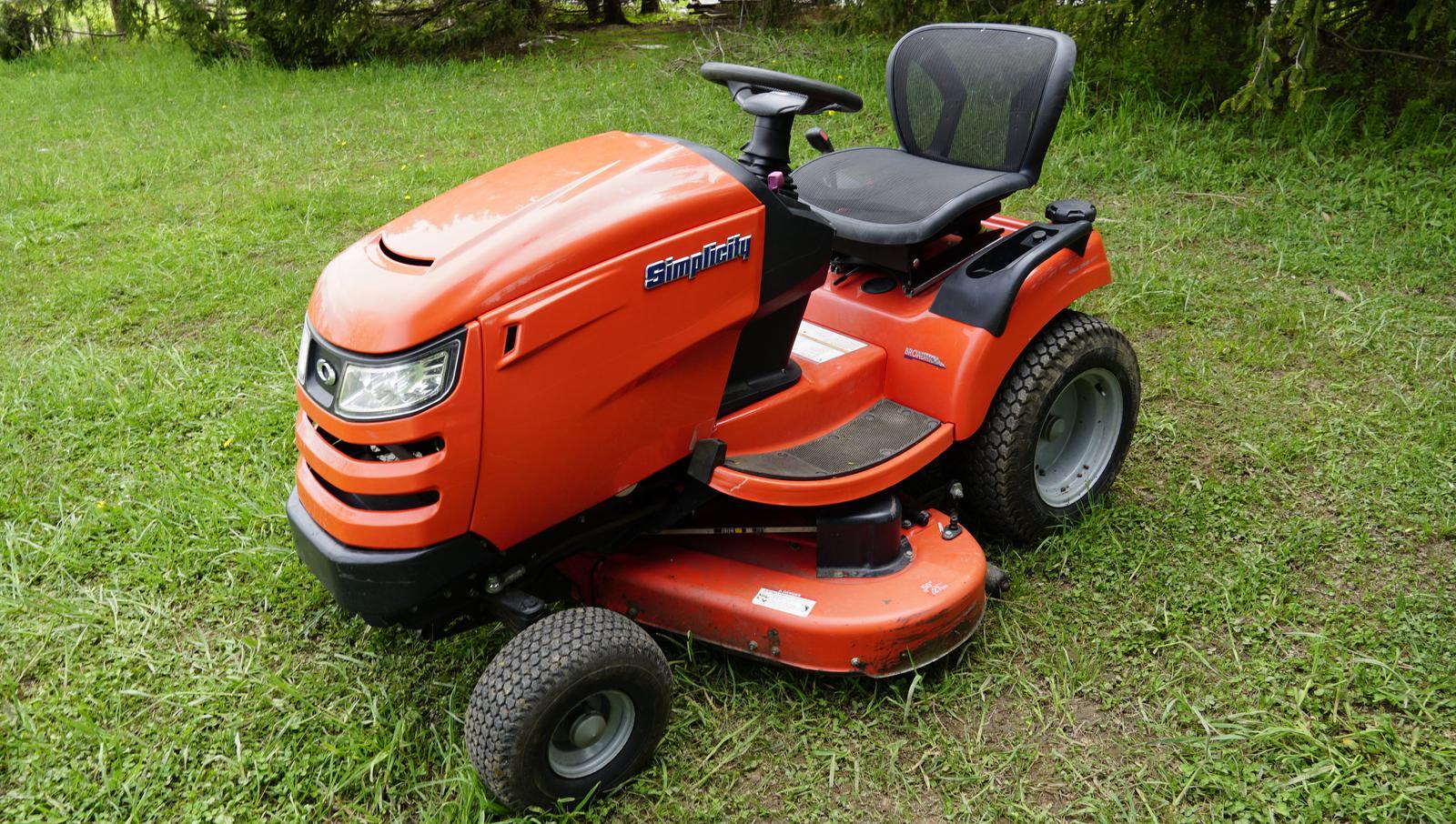 What is the value of this lawn mower : Call tanner or mark for more details. Buyer's premium included in price usd $40 2008 simplicity broadmoor riding mower, 25 hp gas, 44 deck. 20 hp kohler command engine, 50 inch mower deck, 36 inch belt driven simplicity tiller, 796 hours. In 2004, briggs & stratton purchased simplicity.